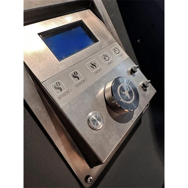 | Feature | Kinderleichte Bedienung, natürliches Holzfeueraroma, Beleuchter Ring: Ab 70°C rot, unter 70°C blau | ||