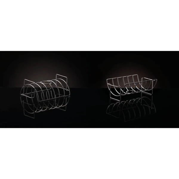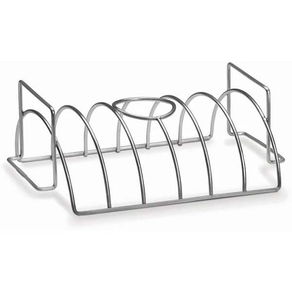 Braten, Ribs oder lieber Hähnchen? Der 3 in 1 Braten- & Ribshalter 56019 von Napoleon bietet alle Möglichkeiten. Reihum eingeschlichtet finden sechs Ribs-Reihen Platz. Oder ein saftiger Braten findet in der Wölbung den idealen Grillplatz. Eine rund Öffnung in der Mitte des Multifunktionalen Halters bietet Gelegenheit für ein Bierdosen-Hähnchen. Einfach eine Bierdose öffnen, in die Rundung einsetzen und ein ganzes Hähnchen darüber stülpen. Um die intensiven Fleischsäfte aufzufangen, eignen sich die exakt passenden Napoleon Alutassen 62008. Der 3 in 1 Multifunktionskorb für Braten, Ribs und Hähnchen ist aus Edelstahl gefertigt und für die Spülmaschine geeignet. Art.-Nr.: 1404522